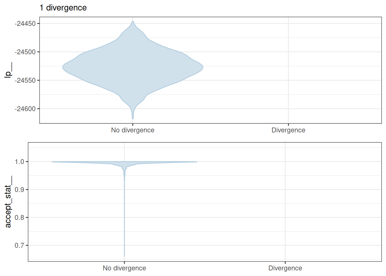 mcmc_nuts_divergence(x = np, lp = lp)Warning: Groups with fewer than two datapoints have been dropped.